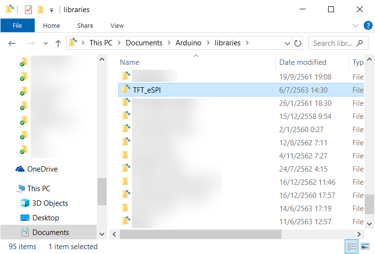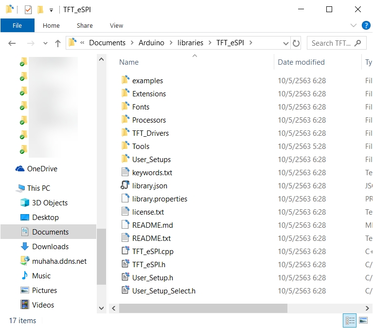 ค้นหาโฟลเดอร์ TFT_eSPI แล้วเข้าไปในโฟลเดอร์ TFT_eSPI