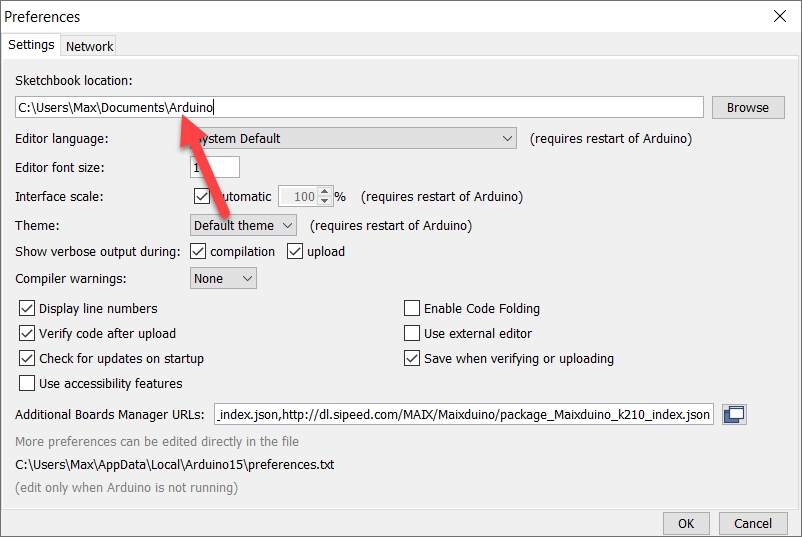 การจะแก้ไขโค้ดโปรแกรมของไลบารี่ได้ จำเป็นจะต้องรู้ก่อนว่าไลบารี่ติดตั้งอยู่ที่โฟลเดอร์ไหน ซึ่งการดูว่าไลบารี่ติดตั้งอยู่ที่โฟลเดอร์ไหนสามารถทำได้โดยกดไปที่เมนู File > Preferences